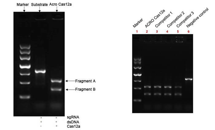 以其切割目标DNA底物的能力来衡量。Cas12a实现了>90%的底物切割,与竞争产品相当。